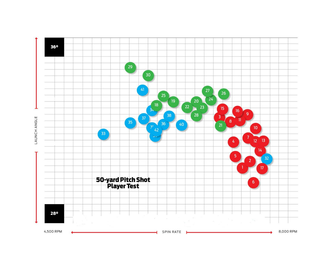 Golf Digest conducted a 50-yard Pitch Shot Player Test for their Hot List testing. The chart speaks for itself. Our Cut Blue is #32. Money can't buy performance or spin.